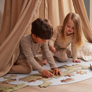 Zábavné Filibabba puzzle pro děti s 30 dílky v jemných pastelových barvách s motivem zvířátek.