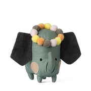 Krásný Picca Loulou šedý sloník s velkýma manšestrovýma ušima a barevným věncem z chlupatých pastelovývh bambulek. S rozkošnou tváří; sešívané oči a kulaté růžové tváře je slon připraven na párty s přáteli na měsíčním světle.