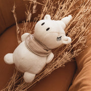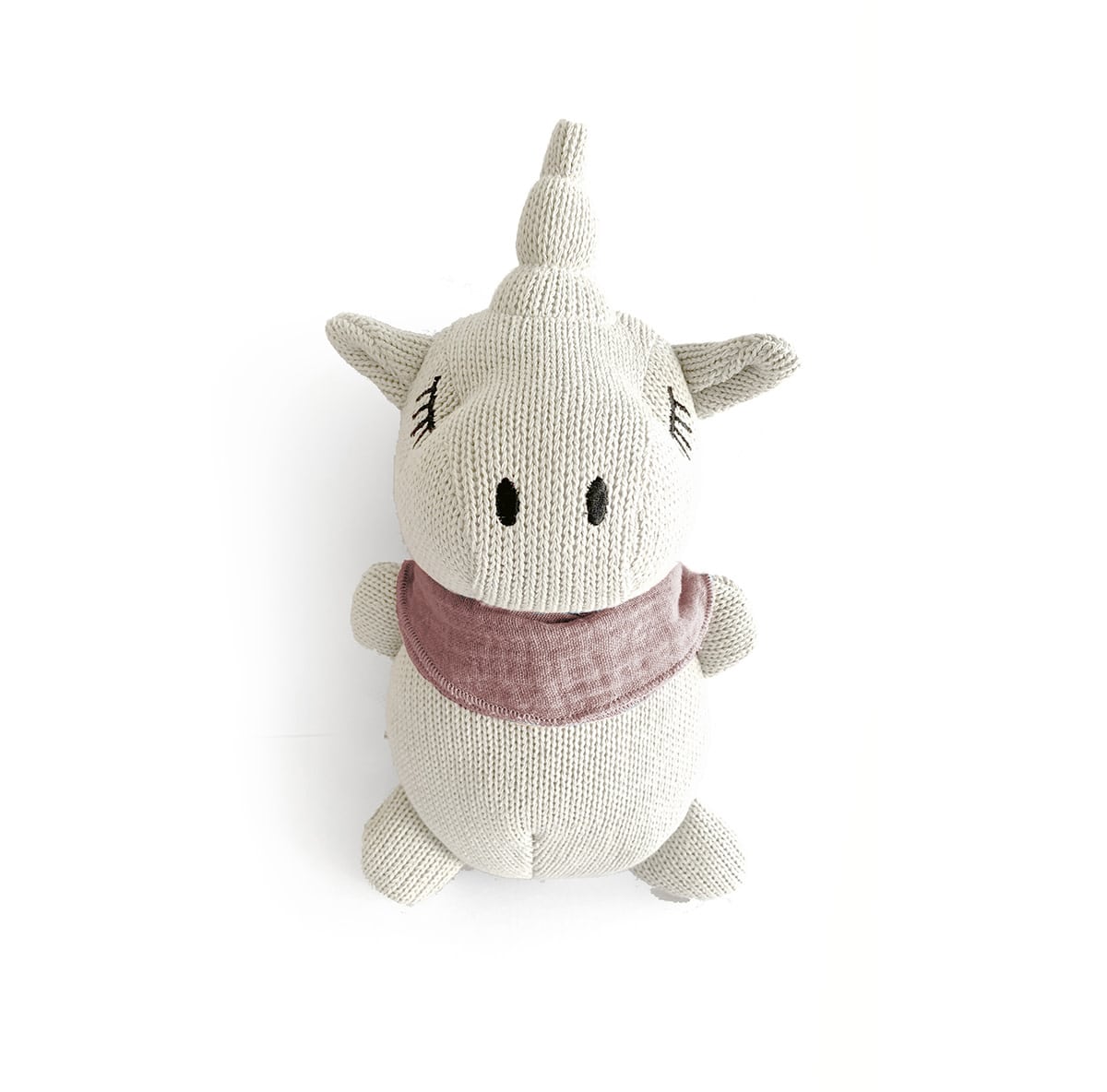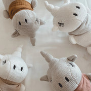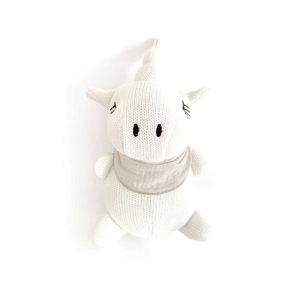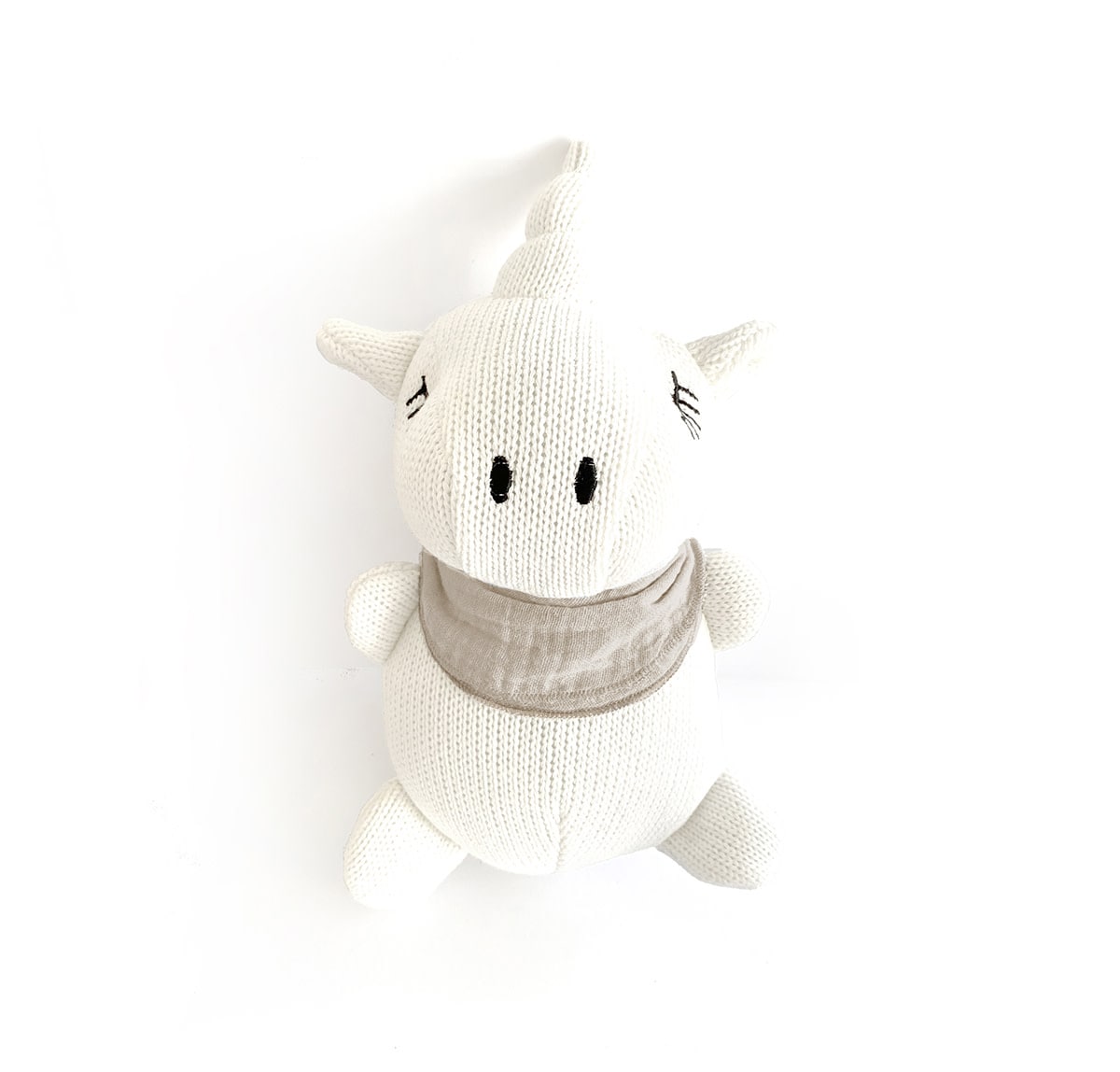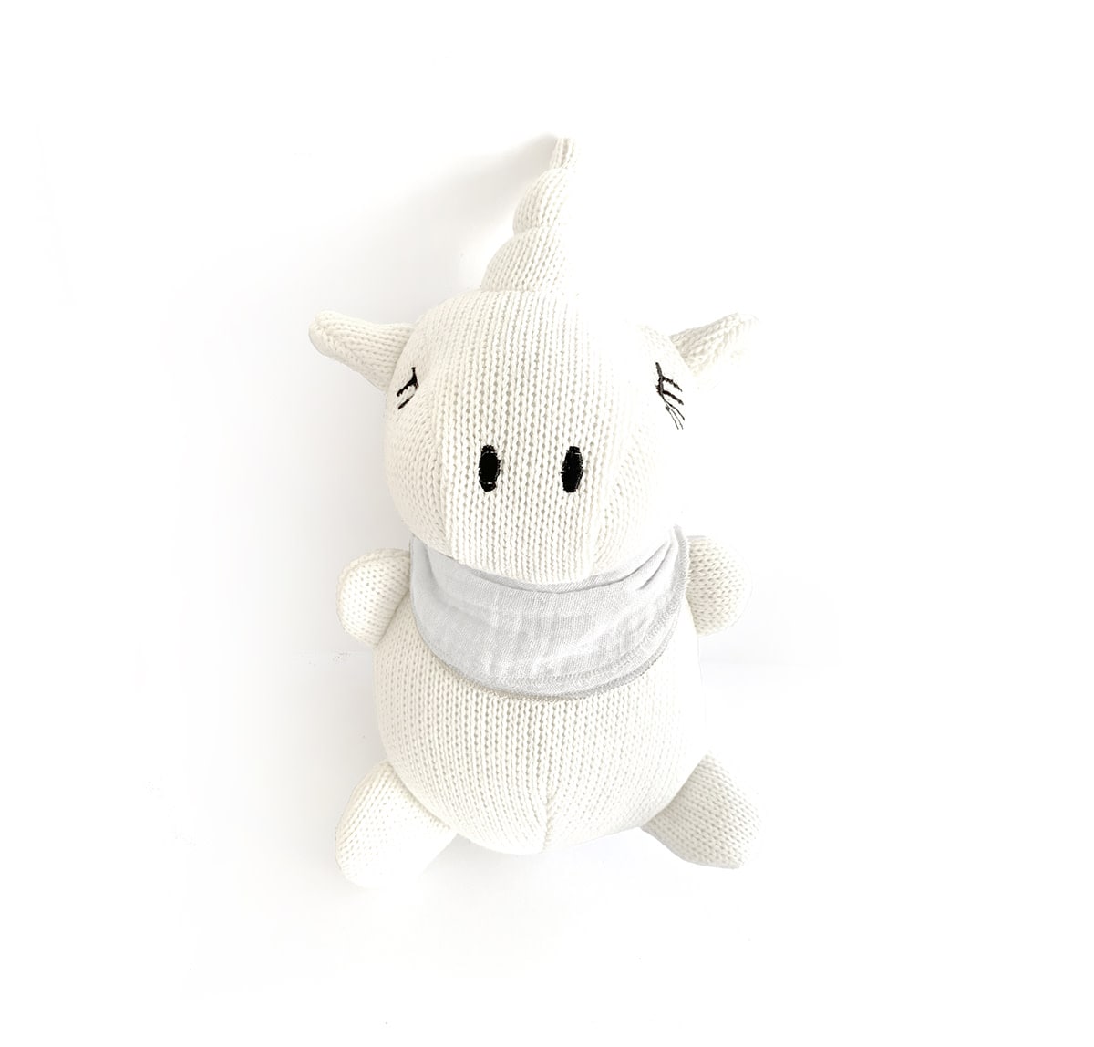 Mrs Ertha mazlící jednorožec je ideálním dárkem pro každé miminko. Uvnitř je chrastítko a tak stimulujete děťátku mimo jiné i sluch. Jednorožci jsou vyrobeni ze 100% mušelínové bavlny a stejně tak i šátky na krku jednorožce jsou ze 100% bavlny.