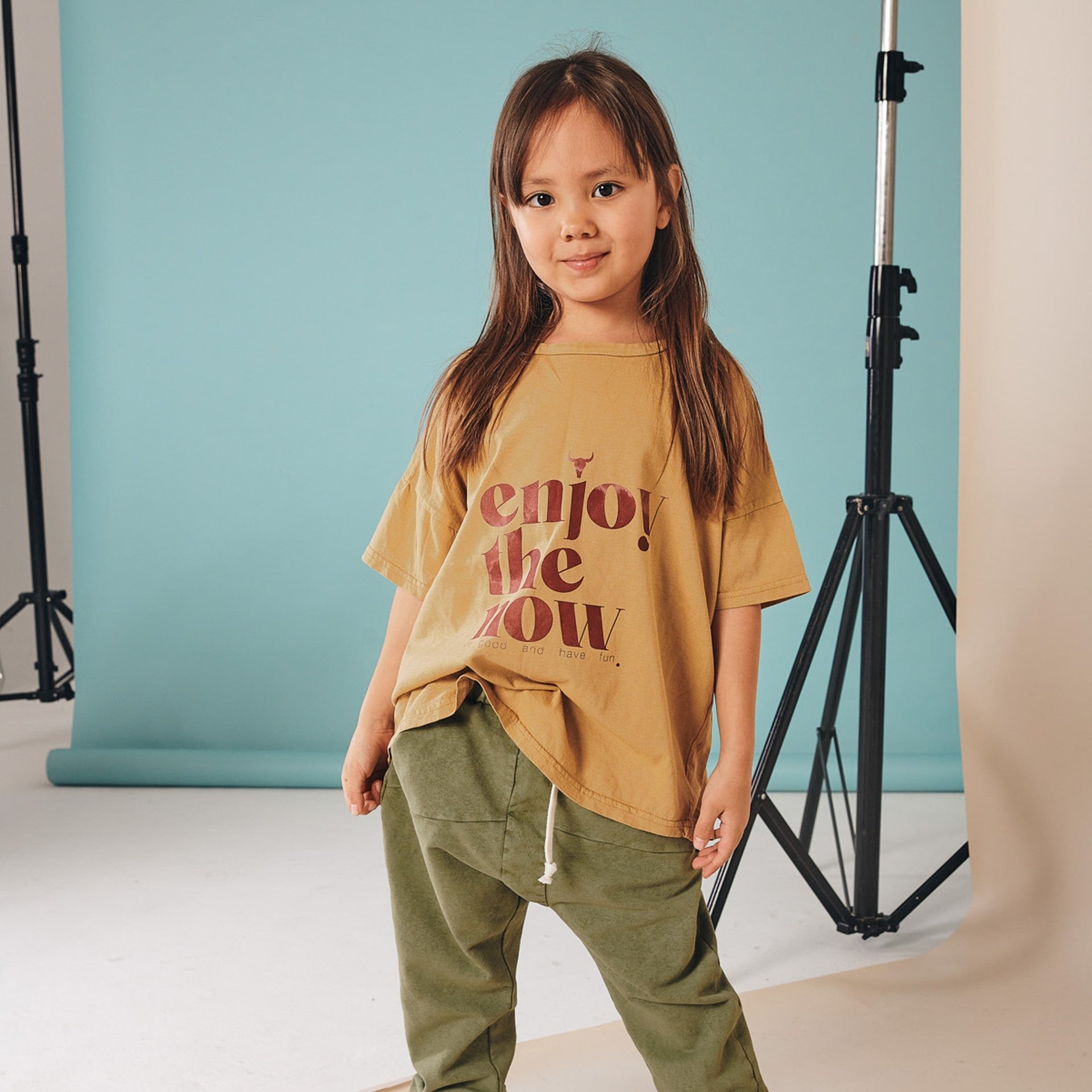 booso tričko s volným delším střihem a krátkým rukávem. Na triku je v přední části potisk s mottem této kolekce - Enjoy the now.