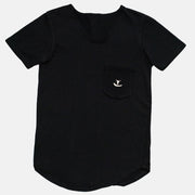 booso Nomad Simple tee is a short sleeve t-shirt with fake pocket with embroidery. The T-shirt has a slim fit with an extended length.