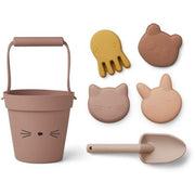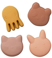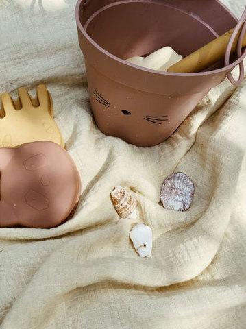 Liewood The Dante beach set with a cat consists of a bucket with a handle, four dolls (in the shape of a panda, a cat, a jellyfish and a bunny) and a shovel. It is intended for all children's games on the sand or in the water. The Liewood set is made of silicone - the material is strong enough and at the same time easy to store thanks to its softness. You can easily squeeze it into your suitcase for traveling or in your backpack when you go to the sand. It is very durable. It will not swell or break, so there is no risk of injury from sharp edges.